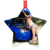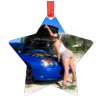 Christmas star-shaped decoration in chromaluxe aluminum printed on both sides. Product with white chromaluxe base with glossy finish. Red ribbon included. Product Size: 9.7 x 10.1 cm