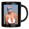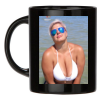 Microwavable and certified food-grade black ceramic mug packed in a box with a side window.