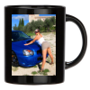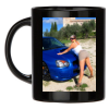 Microwavable and certified food-grade black ceramic mug packed in a box with a side window.