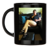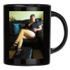 Microwavable and certified food-grade black ceramic mug packed in a box with a side window.